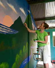 Andrea began painting murals in Portland homes in 2000. Since 2014, she has worked with student groups and the non-profit Seeds of Learning to create murals in Nicaragua—fulfilling a dream rooted in her studies of Mexican muralism and travels in Latin America.